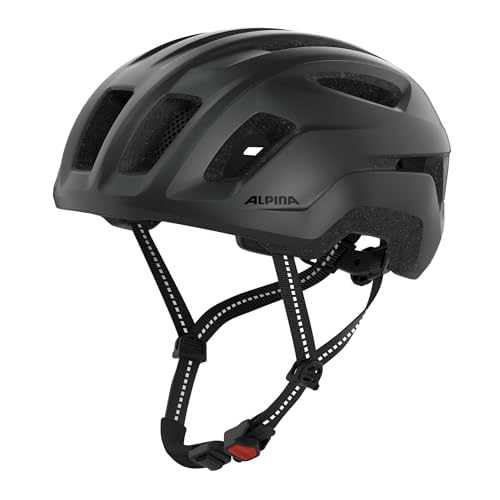 ALPINA PARANUS Urban – Casque de vélo avec feu arrière LED, Coque intérieure légère en Hi-EPS, Grande Ventilation, réglage Individuel et Filet Anti-Insectes intégré - Black Matt - 55-59