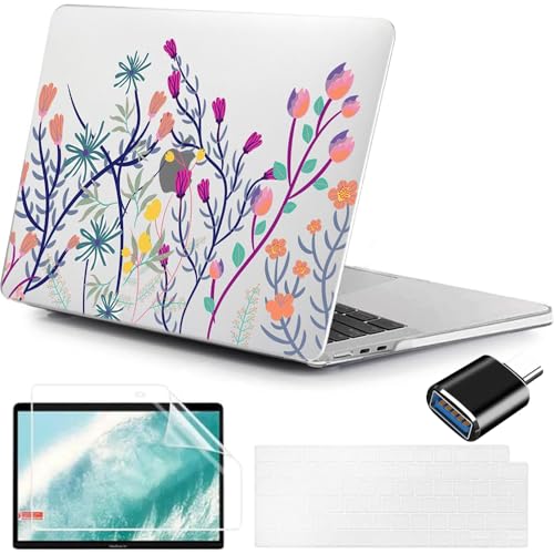 MUSHUI 4 en 1 Coque pour MacBook Air 13 Pouces M4 M3 M2, 2025 2024 2022 (A3240 A3113 A2681) Touch ID, Protection Étui Rigide en Plastique & Protège Clavier & Adaptateur USB C pour Mac Air 13.6 - New19