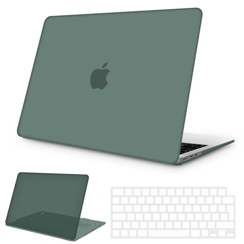 NPUOLS Coque pour MacBook Air 13.6 Pouces M4 M3 M2 2025 2024 2022 Modèle A3240 A3113 A2681, Etui Housse Coque de Protection Rigide en Plastique Mat + Clavier Ultra Mince en TPU Version EU, Vert foncé