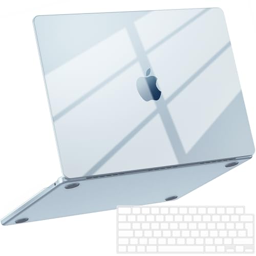 NPUOLS Coque pour MacBook Air 13.6 Pouces M4 M3 M2 2025-2022 Modèle A3240 A3113 A2681, Etui Housse de Protection Rigide en Plastique Mat + Clavier Ultra Mince en TPU Version EU,Bleu Ciel Cristal