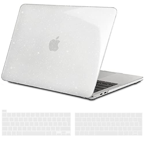TECOOL Coque Compatible avec MacBook Pro 13 2016-2022 (M2 M1 A2338/A2289/A2251/A2159/A1989/A1706/A1708), Coque Rigide en Plastique Fine et Protection Clavier (UE AZERTY), Paillette Transparente