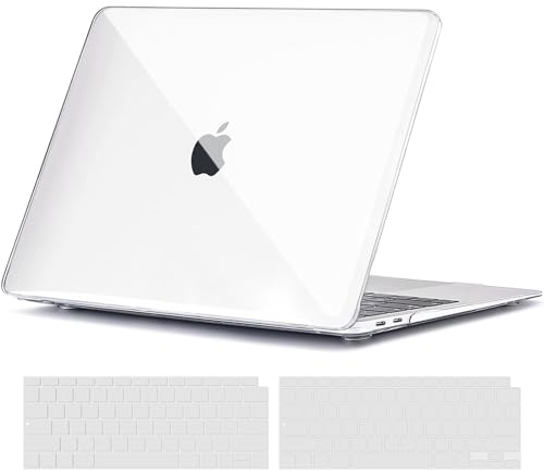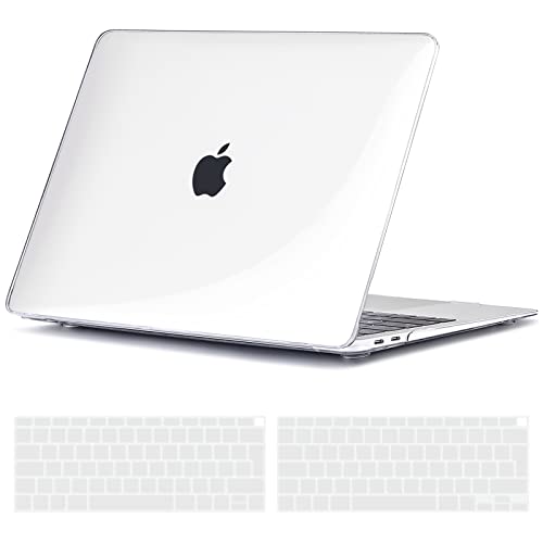 TECOOL Coque Compatible avec MacBook Air M1 (A2337) et MacBook Air 13 Pouces 2020 2019 2018 (A2179 A1932), Coque Rigide en Plastique Fine et Protection Clavier (UE AZERTY), Transparente Clair