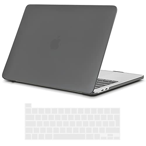 TECOOL Coque Compatible avec MacBook Pro 13 Pouces 2016-2022 (M2 M1 A2338/A2289/A2251/A2159/A1989/A1706/A1708), Coque Rigide en Plastique Fine et Protection Clavier (UE AZERTY), Gris-Noir