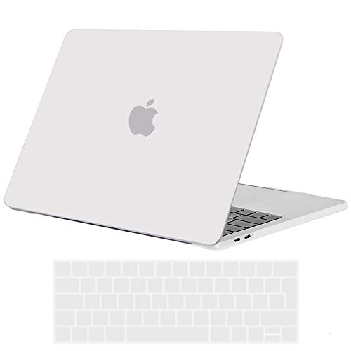 TECOOL Coque Compatible avec MacBook Pro 16 Pouces 2020 2019 (A2141) avec Touch Bar, Coque Rigide en Plastique Fine et Protection Clavier (UE AZERTY), Givre Blanc Translucide