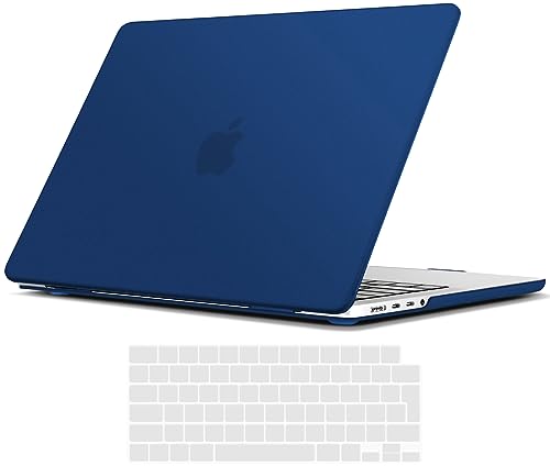 TECOOL Coque Compatible avec MacBook Air M1 (A2337) et MacBook Air 13 Pouces 2020 2019 2018 (A2179 A1932), Coque Rigide en Plastique Fine et Protection Clavier (UE AZERTY), Bleu Marine