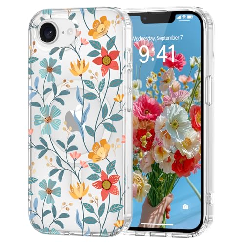 Pepmune Coque Magnétique Florale pour iPhone 16e [Compatible avec Magsafe], Coque de Transparente Anti-jaunissement, Joli Motif Floral Anti-Rayures, Protection TPU pour Filles et Femmes-Jaune