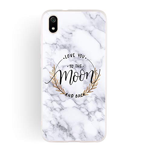 HopMore Marbre Coque pour Xiaomi Redmi 7A Silicone Blanc Étui Motif Belle Drôle Marble Etui Redmi 7A Souple Antichoc Mince Case Housse Fine pour Femmes Fille Hommes - Lune