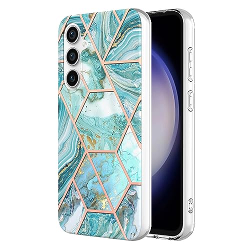 SEAHAI Coque pour Samsung Galaxy S23 FE 5G, Ultra Mince Élégant en Silicone Souple Marbre Coque Brillante Antichoc, TPU Gel Etui Résistant - Vert marbré