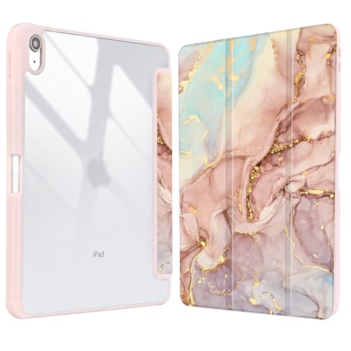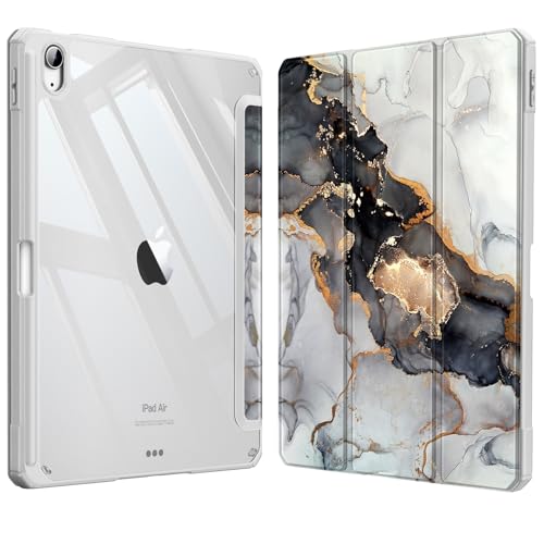 Fintie Étui Hybride Fin pour iPad Air 5e génération (2022) / iPad Air 4e génération (2020) 10,9" – [Porte-Crayon intégré] – Coque arrière Transparente, marbre Nuageux
