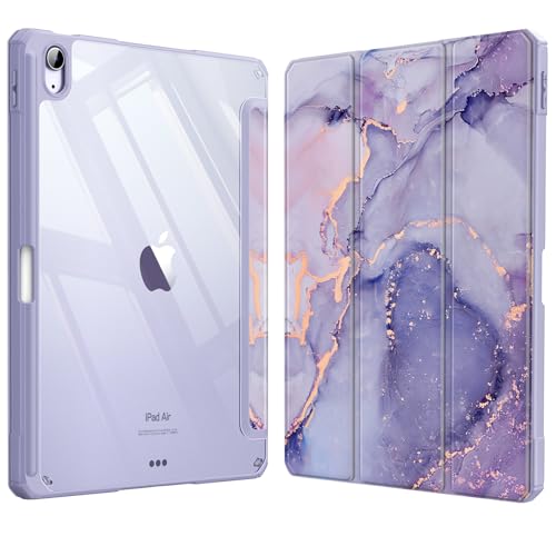 Fintie Étui Hybride Fin pour iPad Air 5e génération (2022) / iPad Air 4e génération (2020) 10,9" – [Porte-Crayon intégré] – Coque arrière Transparente, marbre Lilas