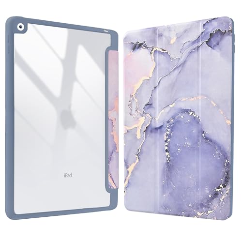 Fintie Étui Hybride Fin pour iPad 9e/8e/7e génération (2021/2020 / 2019) 10,2" – [Porte-Crayon intégré] – Coque arrière Transparente, marbre Lilas