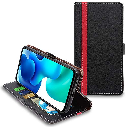 ebestStar - Coque pour Xiaomi Mi 10 Lite, Etui Portefeuille Protection, Housse Pochette PU Cuir Porte Carte, Noir/Rouge