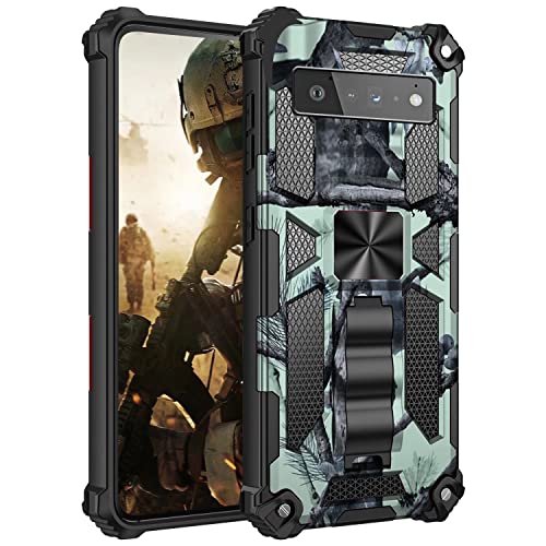 MILAN NICE Coque pour Google Pixel 6 Pro Nouveau Design avec Anneau Rotatif à 360 Degrés Antichoc Étui de Protection Double Couche TPU et PC Housse Protectrice Compatible,Vert