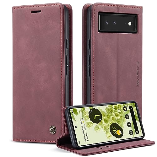 Monweicz Coque pour Google Pixel 6 Clapet Case en Cuir Pochette Protection Portefeuille Rabat Etui Premium Housse Porte Carte Magnétique Étui pour Google Pixel 6, Vin Rouge