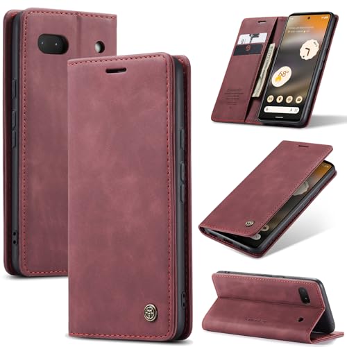 Samokor Coque pour Google Pixel 6A 5G Housse Cuir Premium Etui Rabat Pochette Portefeuille Fentes Cartes Magnétique,Étui Protection pour Google Pixel 6A 5G,Vin Rouge