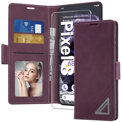 FMPCUON Coque pour Google Pixel 8 Pro 6.7”, Luxe Cuir de Housse Portefeuille Etui Conception Rétro [Fonction Support] Flip Case Compatible avec Google Pixel 8 Pro 6.7”, Pourpre