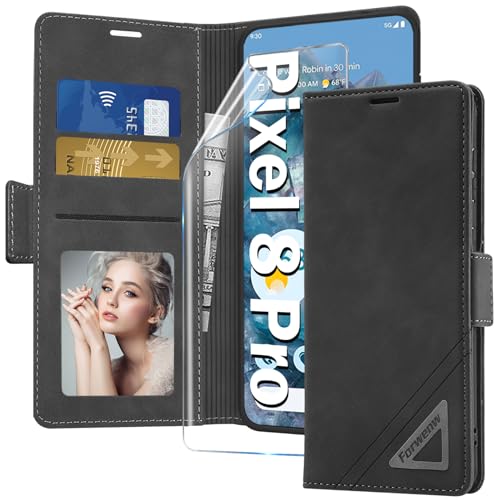 Coque pour Google Pixel 8 Pro Portefeuille Etui, Housse Flip Fentes Carte Premium Cuir PU Coque Google Pixel 8 Pro [RFID Blocage], Fonction Support Antichoc TPU Protection Coque Google 8 Pro (Noir)
