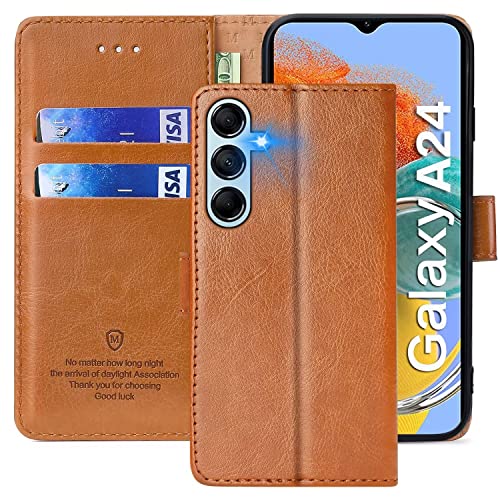 SUANPOT Coque pour Google Pixel 8 5G [RFID Blocage] [Magnétique Protection] Fentes pour Cartes Etui Portefeuille Premium en Cuir PU Brun Clair