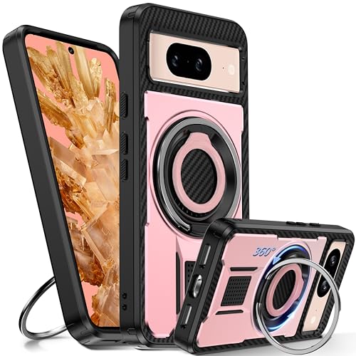 Tuvror Coque pour Google Pixel 8 avec Support. [Anneau Rotatif à 360° et béquille]. Coque Detection Robuste Antichoc pour Pixel 8, Rose
