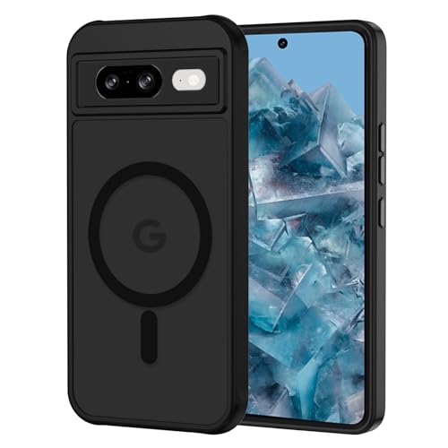 XTCASE Coque pour Google Pixel 8 Magnétique Compatible avec MagSafe, Étui Mat Translucide Minimaliste, PC Dur Housse Arrière Anti-Rayures + TPU Bumper Antichoc - Noir