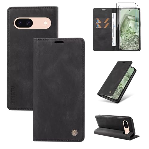 SLWYF Coque pour Google Pixel 8A, Etui Protection Housse Premium en Cuir PU, Pochette Fermeture Magnétique [Fentes pour Cartes] Flip Case Compatible avec Google Pixel 8A, Noir