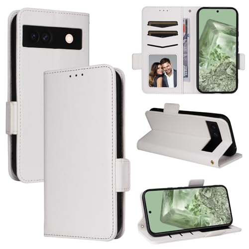 BELLA BEAR Coque pour Google Pixel 8A, Étui Portefeuille en Cuir à Rabat magnétique, Étui de béquille, Étui de Protection Antichoc pour Google Pixel 8A-Blanc