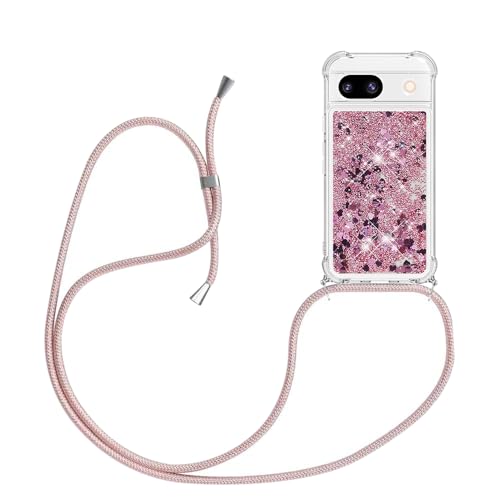 YAMCCCSE Collier Coque pour Google Pixel 8a - Mode Tour de Cou Telephone Étui Paillettes Quicksands Liquide Glitter Cover, Housse pour Smartphone Lanyard Transparente Case