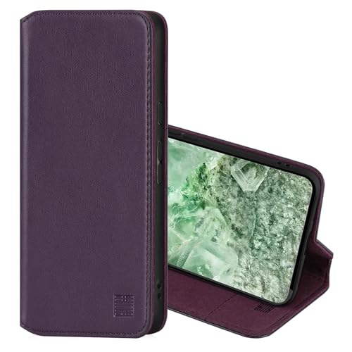 32nd Série Classique 2.0 - Étui Portefeuille en Cuir Véritable Coque pour Google Pixel 8A, Housse avec Blocage RFID Fente CB, Fermeture Magnétique et Fonction de Support - Aubergine