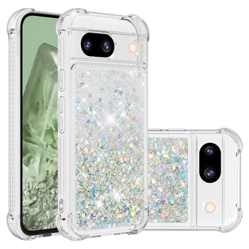 COTDINFOR Coque pour Google Pixel 8A Case Liquide Étui Silicone Amour Paillette Étincelles Floating Antichoc Protective Souple Transparent Phone Cover pour Google Pixel 8A TPU Love Silver YBWTLS.