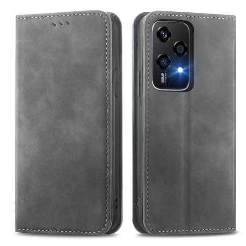 MOJIA Coque pour Honor 200 Lite 5G, Étui Portefeuille Folio en Cuir PU [Fermeture Magnétique], Coque à Intérieure en TPU, Support pour Cartes Housse. Gris
