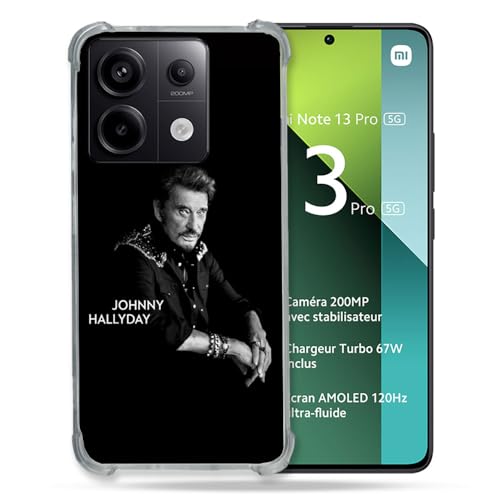 Cokitec Coque Renforcée pour Xiaomi Redmi Note 13 Pro 5G Musique Johnny Hallyday Noir