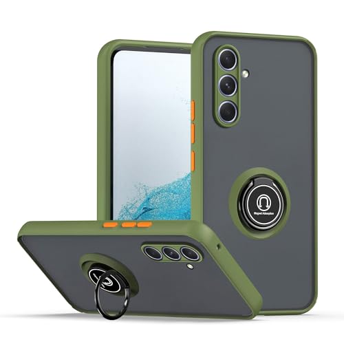 XINYEXIN Coque pour Samsung Galaxy A55 5G, Etui Téléphone Antichoc avec Anneau de Support, Hard PC et TPU Bumper Mat Translucide Case Cover - Armée Verte