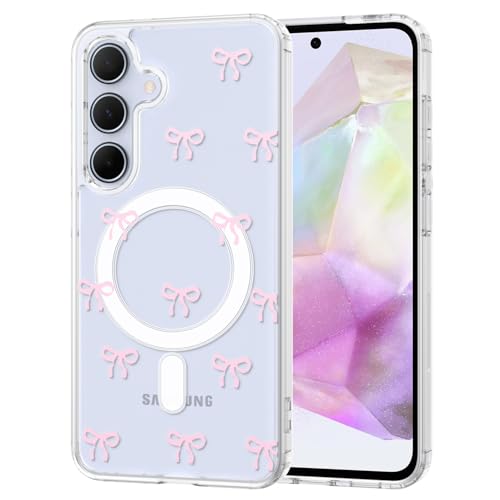 TVVTPU Magnétique Coque pour Samsung Galaxy A55 5G / A35 5G Compatible avec MagSafe, Esthétique Motif de Papillon Housse Anti-Jaune Transparent Étui Aimantée Antichoc Anti-Rayures Dos PC Case, Rose
