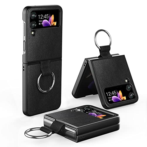 Cresee Coque pour Samsung Galaxy Z Flip 4 5G (2022) avec Anneau, Housse PU Cuir + PC Rigide Étui Coque de Protection pour Galaxy Z Flip4, Noir