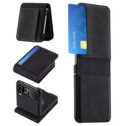 TingYR Coque pour Samsung Galaxy Z Flip 4, Protection Hybride PC et Cuir, avec Emplacement pour Carte et Portefeuille, Anti-Chute Étui Housse pour Samsung Galaxy Z Flip 4.Noir