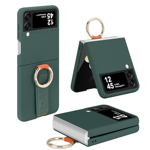 Wirvyuer Coque pour Samsung Galaxy Z Flip 4 avec Bracelet & Anneau, Ultra-Mince Coque Z Flip 4 avec Avant Protection Écran & Protection Charnière Antichoc Étui pour Samsung Z Flip 4 Vert