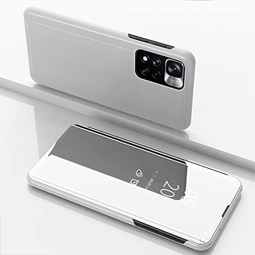 COQUE Étui pour Xiaomi Redmi Note 11 Pro,étuis de téléphone Portable à Vue dégagée avec placage Miroir étui de téléphone Portable à Rabat pour Xiaomi Redmi Note 11 Pro-Argent