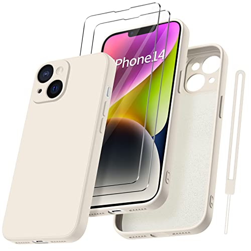 Qasyfanc Coque Protection Caméra pour iPhone 14 avec 2 Pièces Verre Trempé, Housse de Protection Silicone Antichoc Doublure Microfibre Douce Ultra Fine Coque iPhone 14 6.1" - Kaki
