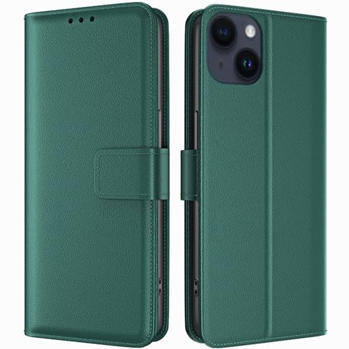 TQIAHF Coque pour iPhone 15 Coque Etui avec Porte Carte à Rabat Clapet Portefeuille en Cuir Pochette Magnétique Antichoc Flip Case Étui Cover Housse Protection Coque pour iPhone 15,Vert Foncé