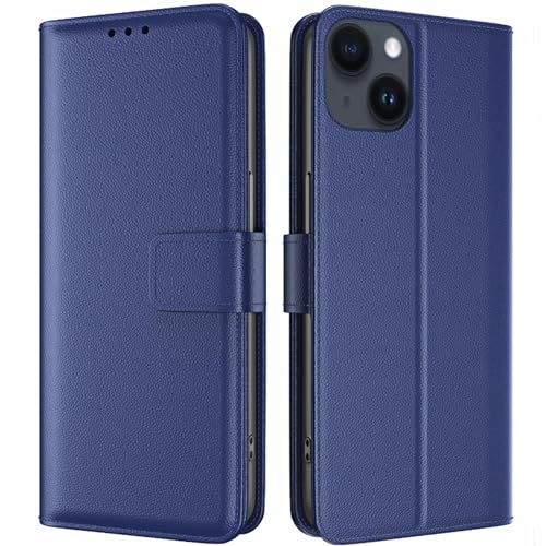 TQIAHF Coque pour iPhone 15 Coque Etui avec Porte Carte à Rabat Clapet Portefeuille en Cuir Pochette Magnétique Antichoc Flip Case Étui Cover Housse Protection Coque pour iPhone 15,Bleu Foncé
