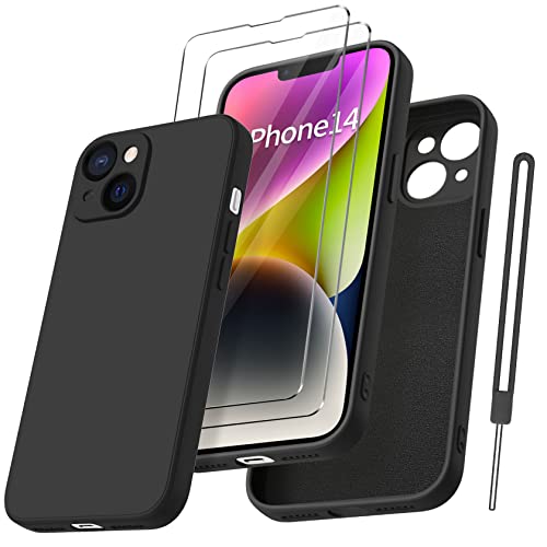 Qasyfanc Coque Protection Caméra pour iPhone 14 avec 2 Pièces Verre Trempé, Housse de Protection Silicone Antichoc Doublure Microfibre Douce Ultra Fine Coque iPhone 14 6.1" - Noir