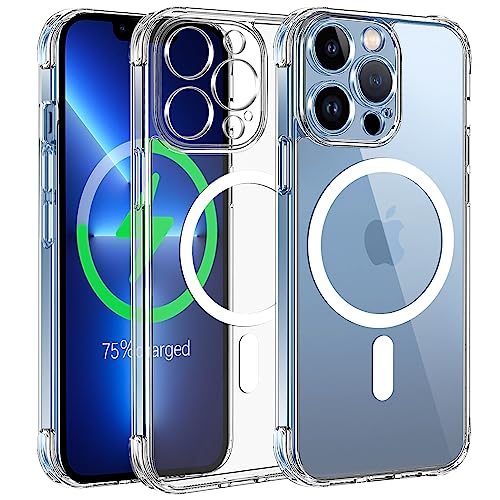 Qasyfanc Magnétique Coque Protection Caméra pour iPhone 13 Pro Max Compatible avec MagSafe Charge sans Fil, Anti-Jaune Antichoc Anti-Rayures Étui Housse pour iPhone 13 Pro Max, Transparente