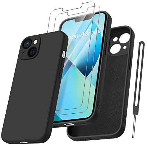 Qasyfanc Coque Protection Caméra pour iPhone 13 Mini avec 2 Pièces Verre Trempé, Housse de Protection Silicone Antichoc Doublure Microfibre Douce Ultra Fine Coque iPhone 13 Mini (Black)