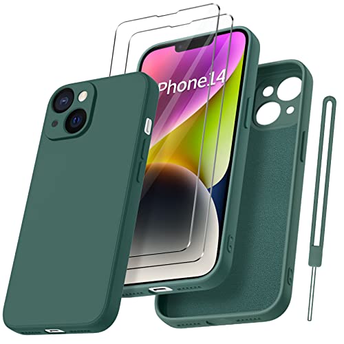 Qasyfanc Coque Protection Caméra pour iPhone 14 avec 2 Pièces Verre Trempé, Housse de Protection Silicone Antichoc Doublure Microfibre Douce Ultra Fine Coque iPhone 14 6.1" (Green)