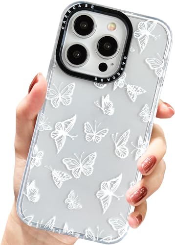 AMART Coque de protection pour iPhone 13 Pro - Transparente avec motif papillon blanc - Pour femme et fille - En silicone TPU souple - Anti-chocs - Pour femme et fille