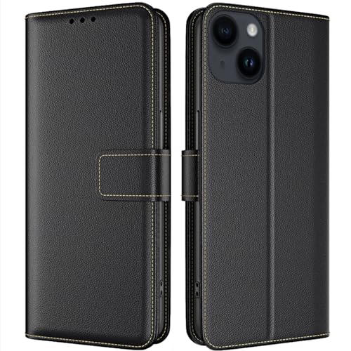 TQIAHF Coque pour iPhone 15 Coque Etui avec Porte Carte à Rabat Clapet Portefeuille en Cuir Pochette Magnétique Antichoc Flip Case Étui Cover Housse Protection Coque pour iPhone 15,Noir