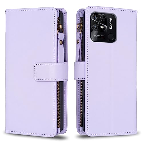 Jiajihua Coque Compatible avec Redmi 10C 4G / 10 (lndia) 4G,Compatible avec Xiaomi Poco C40 Lanyard Portefeuille à Fermeture éclair Support Rabattable Fentes pour Cartes Fermeture magnétique Purple