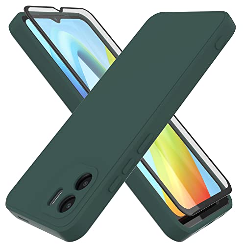 HHUIWIND Coque pour Xiaomi Redmi A1 / Redmi A2 4G (6.52") avec Verre Trempé écran Protecteur,Housse de Protection Silicone TPU Anti-Scratch Antichoc Bumper Étui Case Cover - Vert01