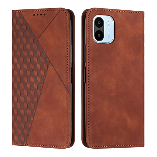 KOUYI Coque pour Redmi A1, Premium Flip Housse Étui Protection Rabat Clapet Portefeuille Phone Cover Magnétique [Porte Cartes] Antichoc Béquille Cover (Marron)