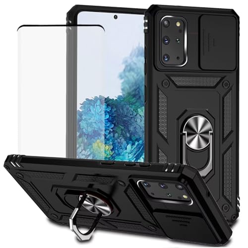 Jhxtech Coque pour Galaxy S20 Plus, coque Samsung S20+ SM-G985 avec protection d'écran en verre trempé et housse d'appareil photo, anneau magnétique de support de voiture, béquille pour Samsung Galaxy